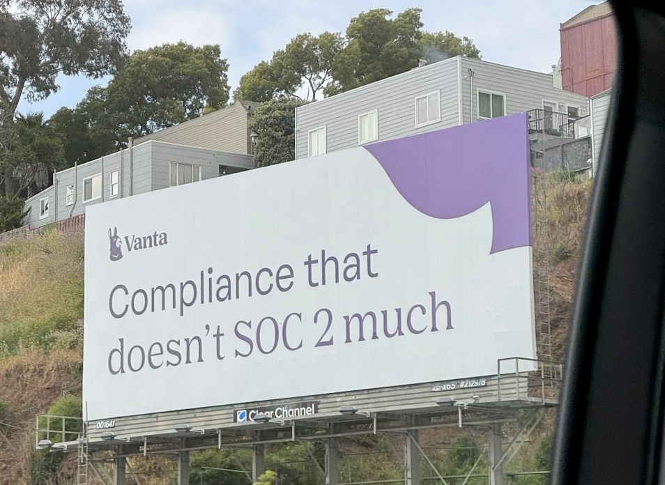 My favorite ad from my time in San Fran was from Vanta, and I saw it before I even got to Moscone. On my ride from the airport, I caught a billboard that read “Compliance That Doesn’t SOC 2 Much” and had a bit of a giggle (what does that say about my sense of humor?). That chuckle was enough to make their name memorable prior to even setting foot on the expo floor and it enticed me to check out their booth in a way that the feature-forward ads I saw everywhere didn’t.